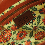 The interior is lined in canvas fabric with a beautiful vintage-like floral pattern with one zippered pocket, and two interior side pockets. Our Modern Chic tote bag has an open top with a large leather button and a thin leather strap closure. The shoulder straps are the perfect length to fit over your shoulder, carrying all your essentials with you and showcasing your unique style along the way.