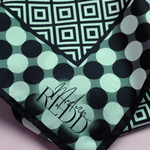 Combining squares and circles, the Modern Redd Mooi Monique Circles scarf is an essential accessory that you can wear with endless outfits. The geometric patterns are expertly blended in the square scarf: the interior square features dark and light squares and a border frame with dark and light circles frames it, creating an overall dimensional effect that feels airy and elegant.
