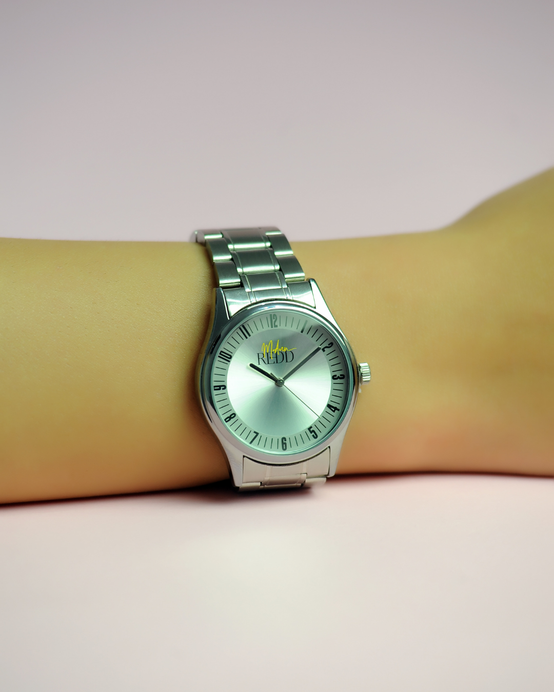 • Modern Redd logo on the face