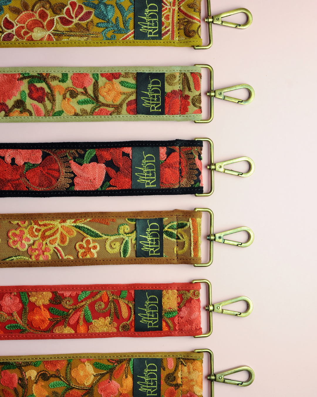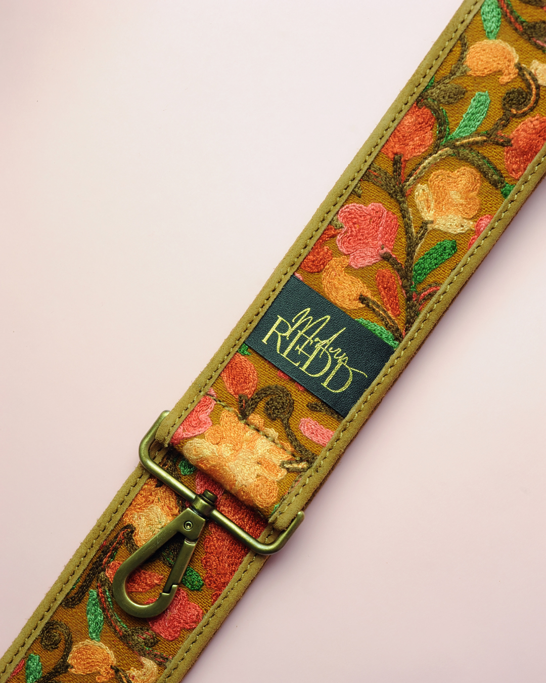 We bring you our Artisan Redd Embroidered replacement strap. It is made from embroidered silk on top, with a bottom-side of top-grain cow suede leather and a Granola Beige color scheme. The embroidery features lovely flowers in complementing colors that you can use with your favorite purse or handbag.