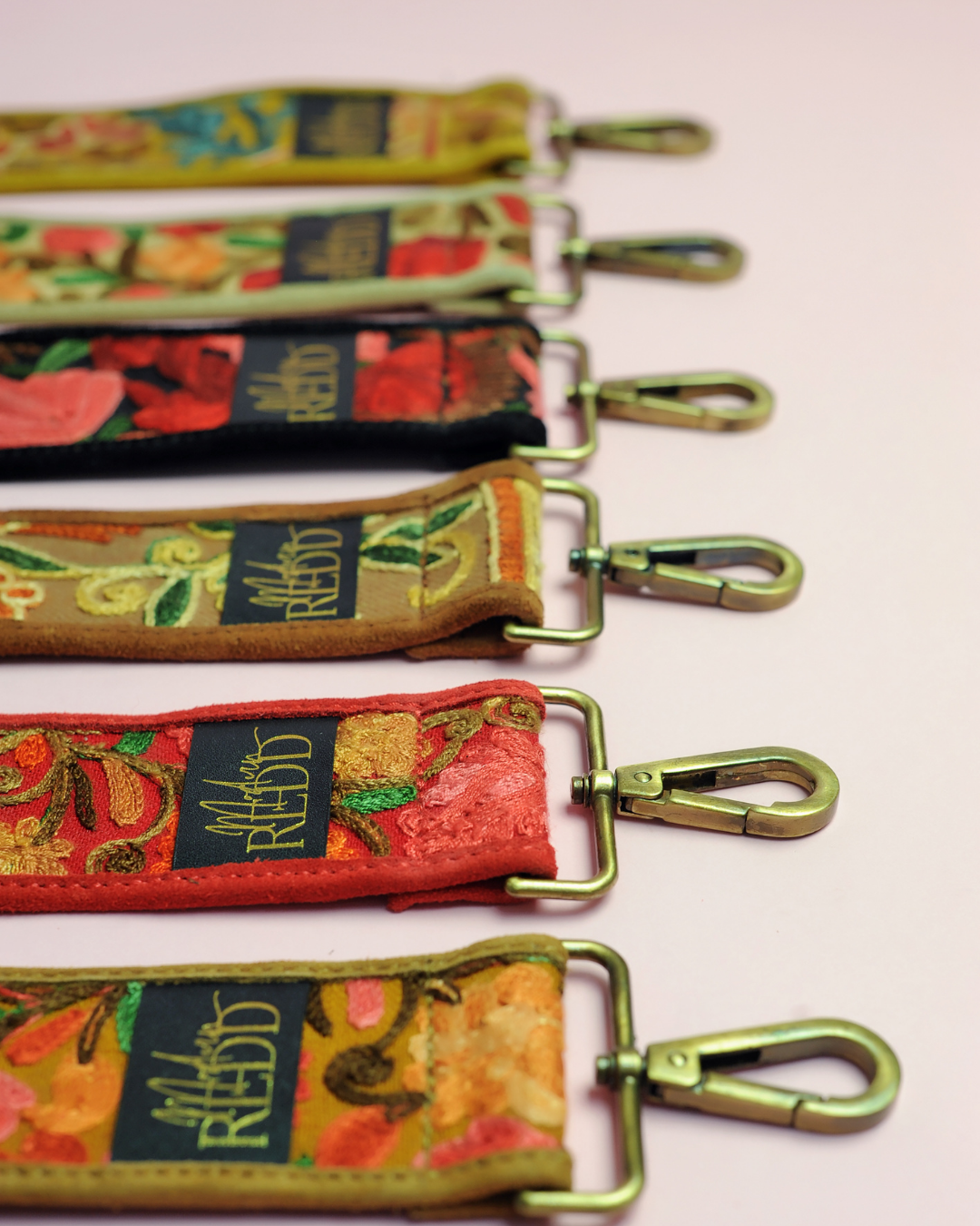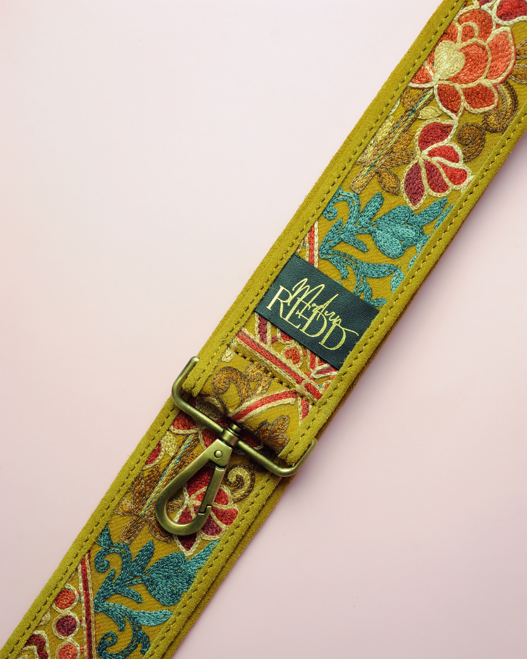 Our Artisan Redd Embroidered replacement strap features antique brass hardware with swivel snap hooks on both sides. It is adjustable in length, allowing you to combine it in different styles. The Modern Redd replacement strap is perfect for personalizing your look and elevating your style.
