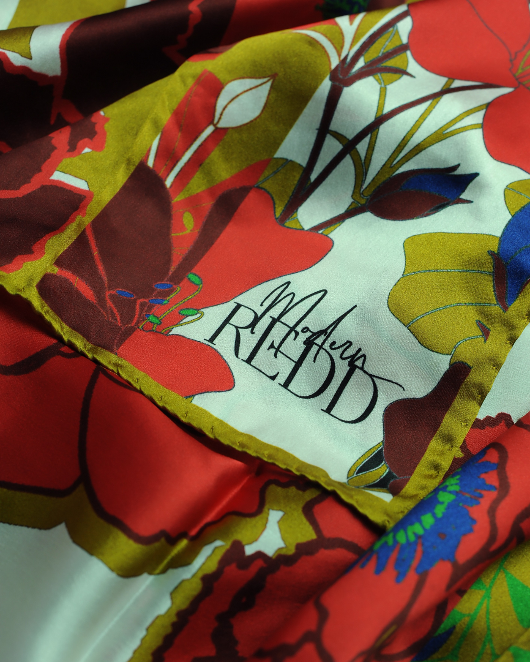 Our Diane Culture Redd Floral scarf is an elegant and beautiful choice for the modern lady looking to enhance her style. The scarf features an impressive design with abstract floral prints in perfectly combined shades of gold, red, and white flowers, with the Modern Redd logo blended into the design. The Diane Culture Redd scarf is rectangular, which allows you to tie and wear it in various ways.