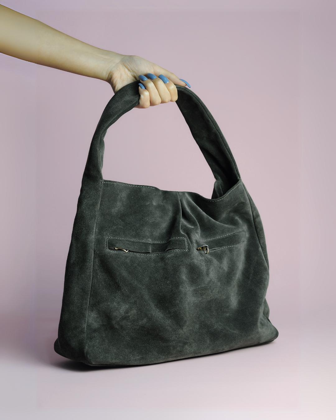 It is made from hand-selected cow suede leather, providing a luxurious tactile feeling and excellent resistance to wear with beautiful tartan lining. There is no exterior hardware, and only two antique brass zipper pulls that peek from the front pockets; this design uniquely amplifies the beauty of the smooth grey suede leather while ensuring you can easily pair it with almost all everyday outfits.