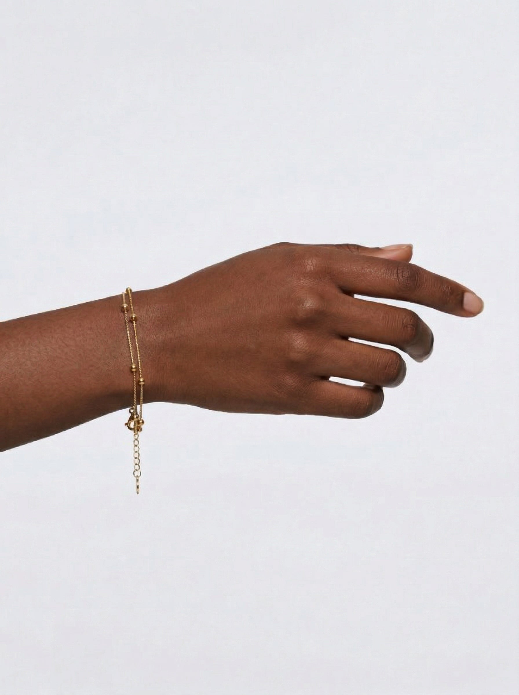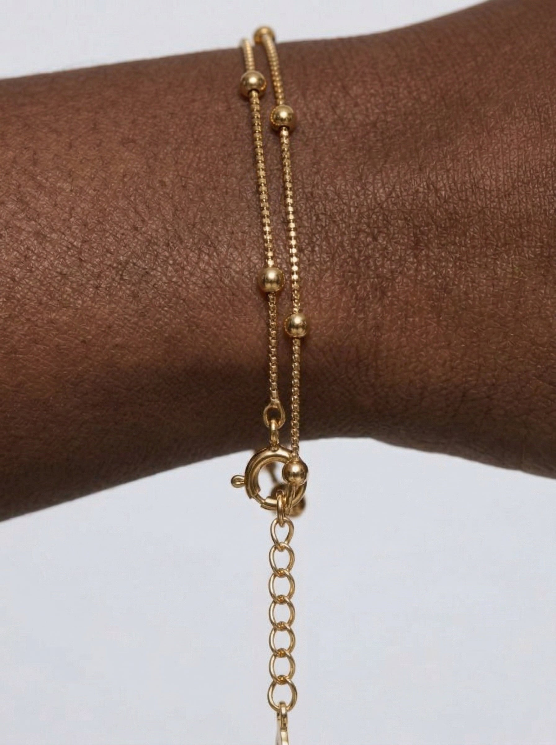 We present our multi-layered minimalist bracelet, featuring a tightly knit snake chain. The chain also features small beads interwoven into it, breaking the monotony and enhancing the bracelet’s look and feel. It features a small swivel clip and an additional inch of length to adjust the fit around your wrist. We suggest you combine it with our Stainless Steel Minimalist Multi-Layer Necklace for a perfect look. We must note that this bracelet is made of stainless steel, brass-plated for a vintage gold look. The bracelet can also be an excellent gift for a special lady in your life.